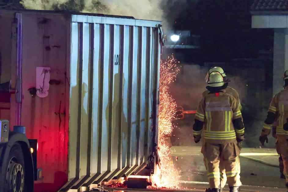 Die Einsatzkräfte vor Ort reagierten schnell und zogen den brennenden Container mit Hilfe eines Feuerwehrfahrzeugs von dem Gebäude weg, um ein Übergreifen der Flammen zu verhindern. Nach einem ersten Löschangriff wurde der Container geleert, da sich noch Glutnester im zusammengepressten Papier befanden.