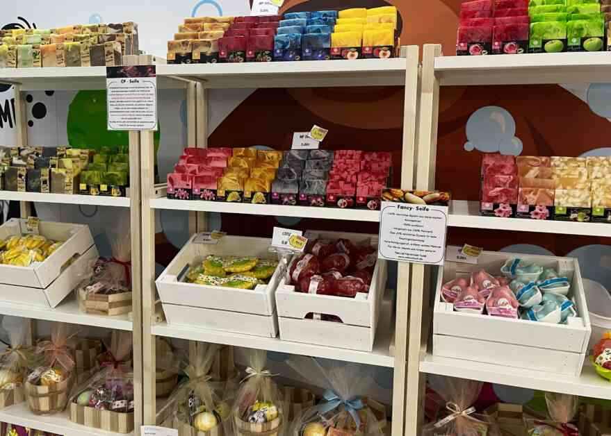 In dem von Familie Song geführten Geschäft findet man eine Auswahl von rund 50 verschiedenen Kernseifen, die sich durch ihre Qualität und natürlichen Inhaltsstoffe auszeichnen. Kim, der Sohn der Inhaberin, erklärt den Unterschied zu herkömmlichen Seifen aus der Drogerie: “Unsere Seifen werden in zertifizierten Produktionsstätten in Thailand hergestellt und enthalten wertvolle Pflanzenöle, natürliche Fette und ätherische Öle. Viele unserer Kunden schwören auf die einzigartigen Duftkompositionen und die feuchtigkeitsspendende Wirkung unserer Seifen.”